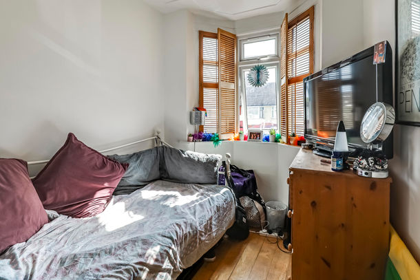 The upstairs is comprised of the properties Three bedrooms, the master bedroom is located at the front of the property with large bay windows. Giving the benefit again of natural light and widespread space. The bedroom next door offers almost an identical floor space. The final bedroom is classified as a single but due to the property’s natural width it could easily fit a double should one need.