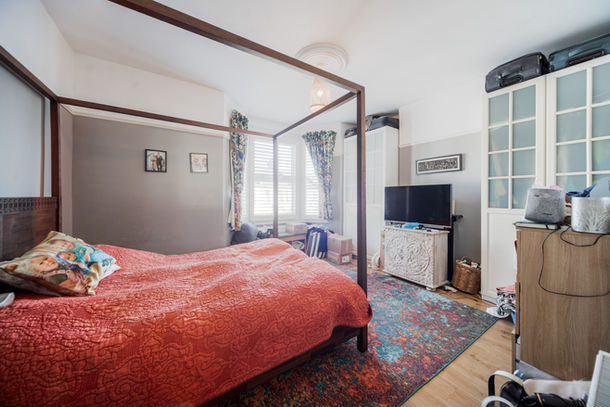 Wooden flooring, bay double glazed window, bespoke built in wardrobes in alcoves, picture rail, coving.